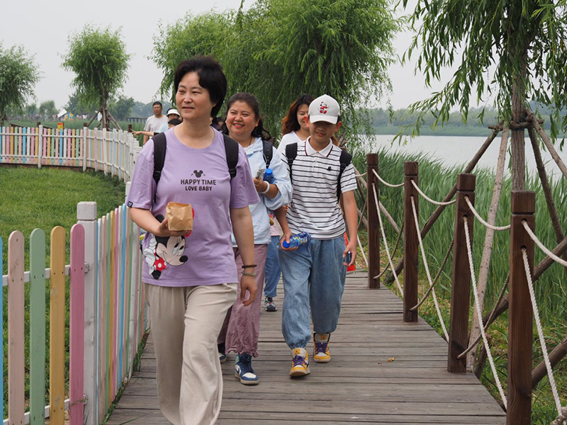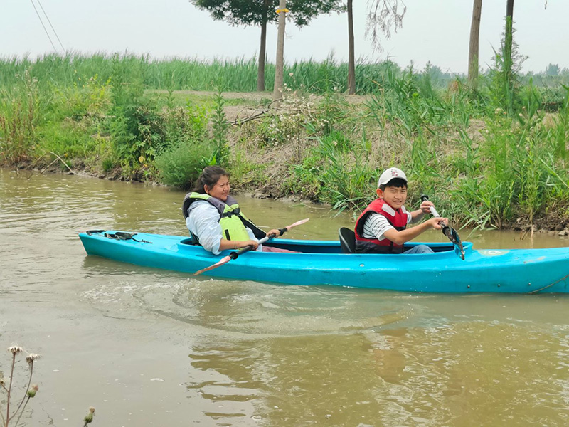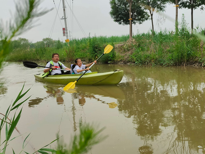 濕地皮劃艇項(xiàng)目將上午的活動(dòng)推向高潮。大家躍上皮劃艇,在粼粼波光中揮槳前行,或你追我趕,上演一場(chǎng)酣暢淋漓的水上競(jìng)速;或悠然自得,沉醉于濕地的如畫(huà)風(fēng)光。水面上歡笑聲與加油聲此起彼伏,奏響了活力四溢的夏日樂(lè)章。