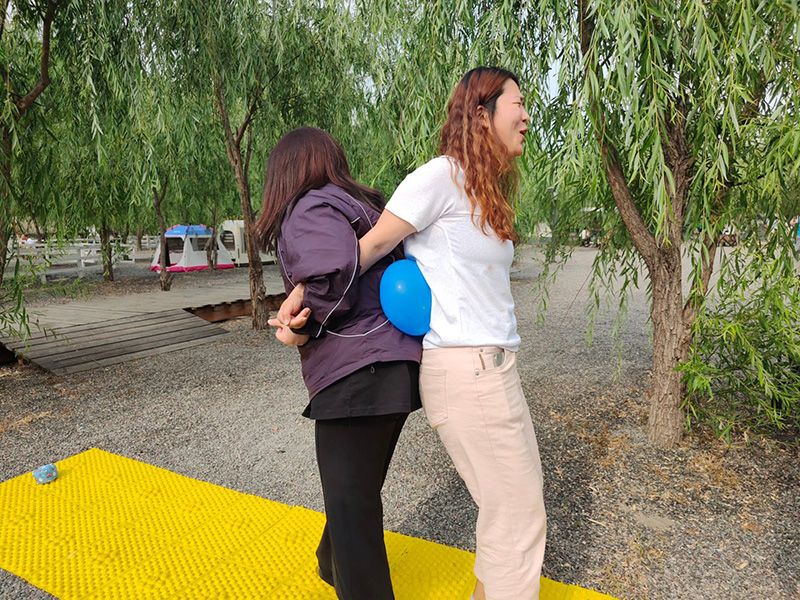 最后的指壓板大戰(zhàn)搖身變?yōu)橐粓?chǎng)“童年闖關(guān)大挑戰(zhàn)”。大家赤足踏上指壓板,挑戰(zhàn)跳繩、跳格子等經(jīng)典童年游戲任務(wù)。腳底雖傳來(lái)陣陣酸爽刺激,臉上卻始終綻放著燦爛笑容,咬牙堅(jiān)持。團(tuán)隊(duì)成員們?cè)谝慌詩(shī)^力吶喊助威,互相鼓舞打氣,齊心協(xié)力共闖難關(guān),在歡笑與互助中凝聚起強(qiáng)大的團(tuán)隊(duì)力量,將活動(dòng)氛圍推向頂點(diǎn)。