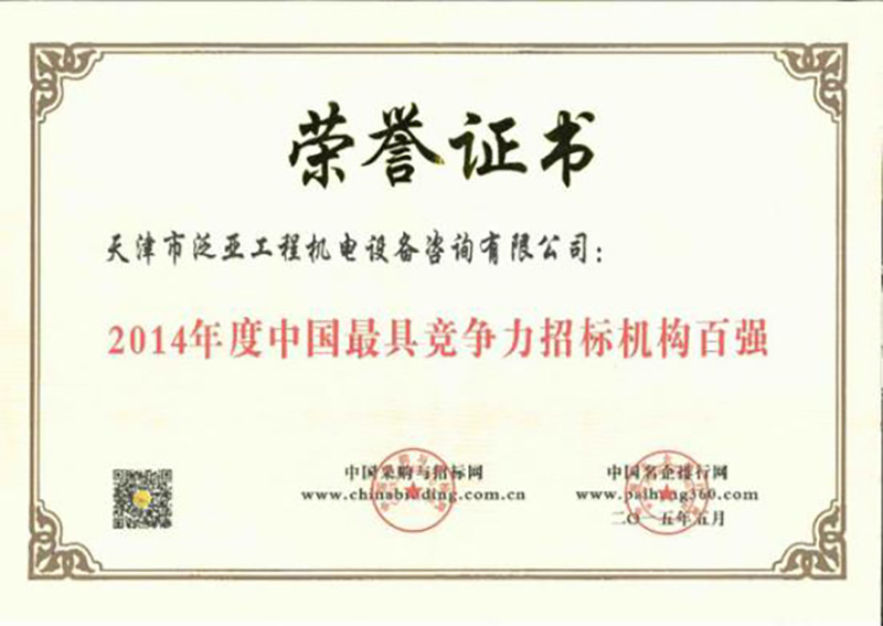 2014年度中國最具競爭力招標(biāo)機(jī)構(gòu)百強(qiáng)