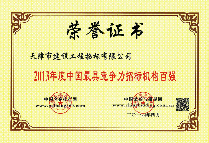 2013年度中國最具競爭力招標機構百強