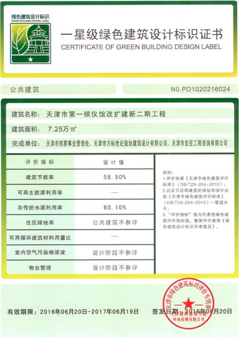 天津市第一殯儀館改擴建項目 更新時間:2021-09-14 點擊:2181 所屬欄目:社會事業(yè) 坐落在天津市北辰區(qū)鐵東路(第一殯儀館院內(nèi))。總投資約3.6億元,總建筑面積7.3萬平米,地上兩層,地下一層,其中:地上5.3萬平米,地下2萬平米,框架結構,屬于天津市民心工程。該項目于2016年6月通過專家會評審,獲得國家一星級綠色建筑設計標識。 服務內(nèi)容 能評、綠建咨詢、招標代理