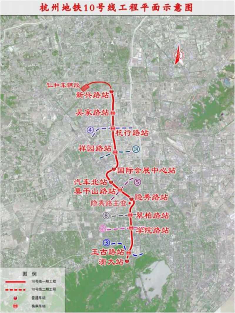 項(xiàng)目建設(shè)規(guī)模規(guī)模10號(hào)線(xiàn)一期工程起于浙大站,沿浙大路→玉古路→學(xué)院路→余杭塘河邊→莫干山路→石祥路→杭行路→勾仁大道敷設(shè),終止于新興路站,線(xiàn)路全長(zhǎng)15.92公里,設(shè)置站點(diǎn)12座,全部為地下線(xiàn),平均站間距1407.21米。10號(hào)線(xiàn)一期工程可與地鐵2、3、4、5、14等5條線(xiàn)路形成換乘。